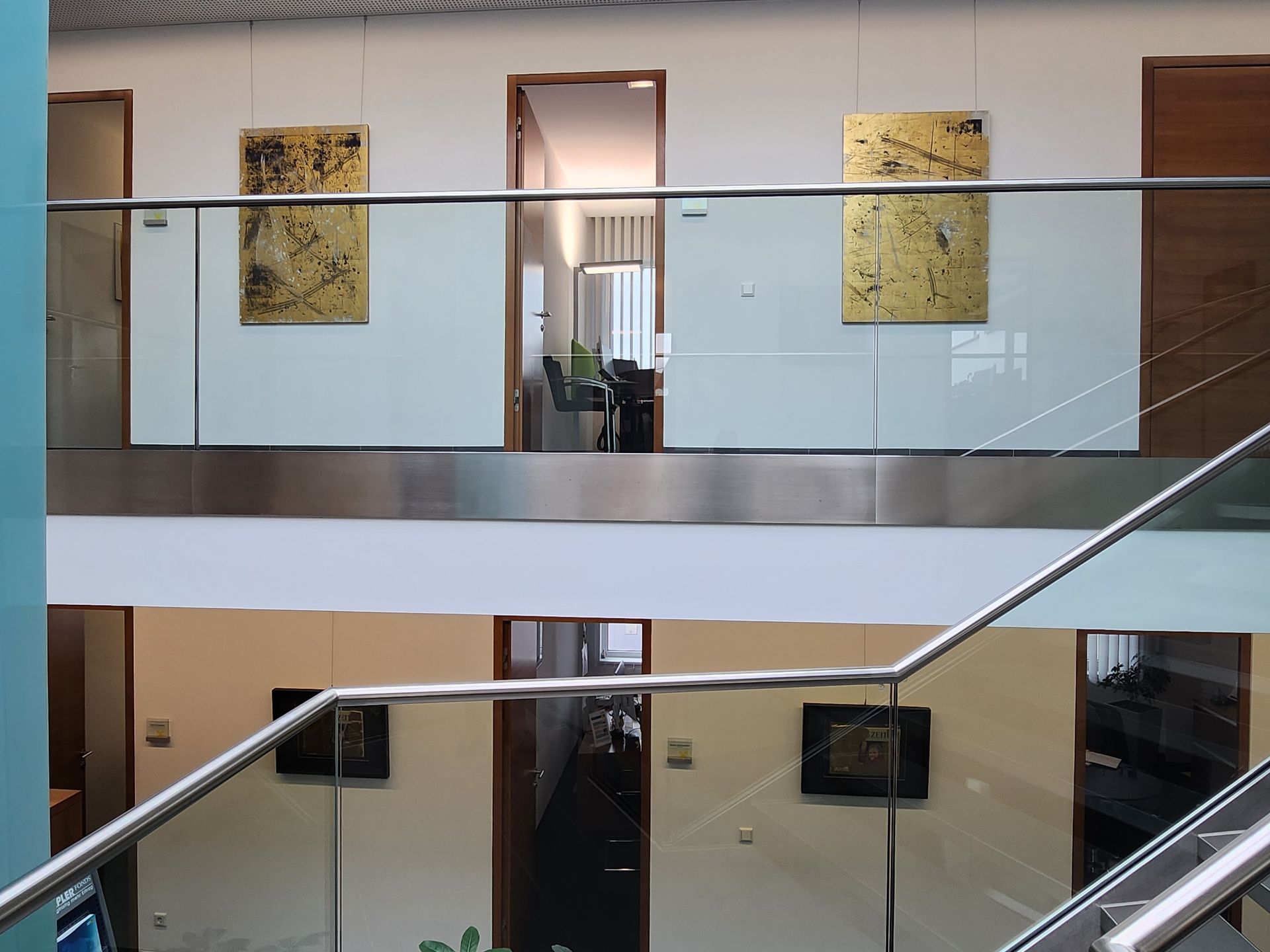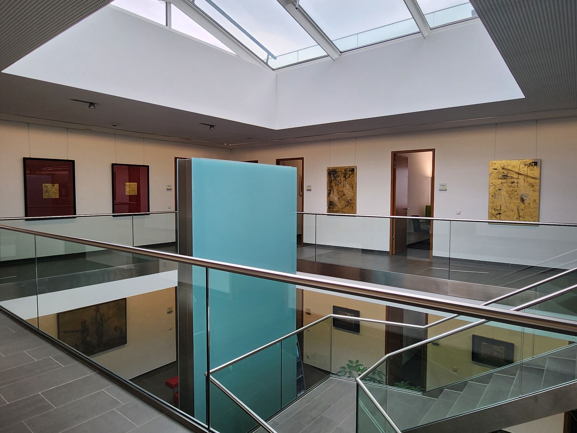 Besonders erfreulich war es für mich, überraschend meine Werke im EG und 1. OG sehen zu können. Ich dachte eine andere Ausstellung sei noch aktuell zu sehen. Alle Werke sind im Besitz der Raiffeisenbank und werden immer wieder zwischen temporären Ausstellungen präsentiert. Auch die gefühlvolle Hängung der Arbeiten war mir eine Freude!