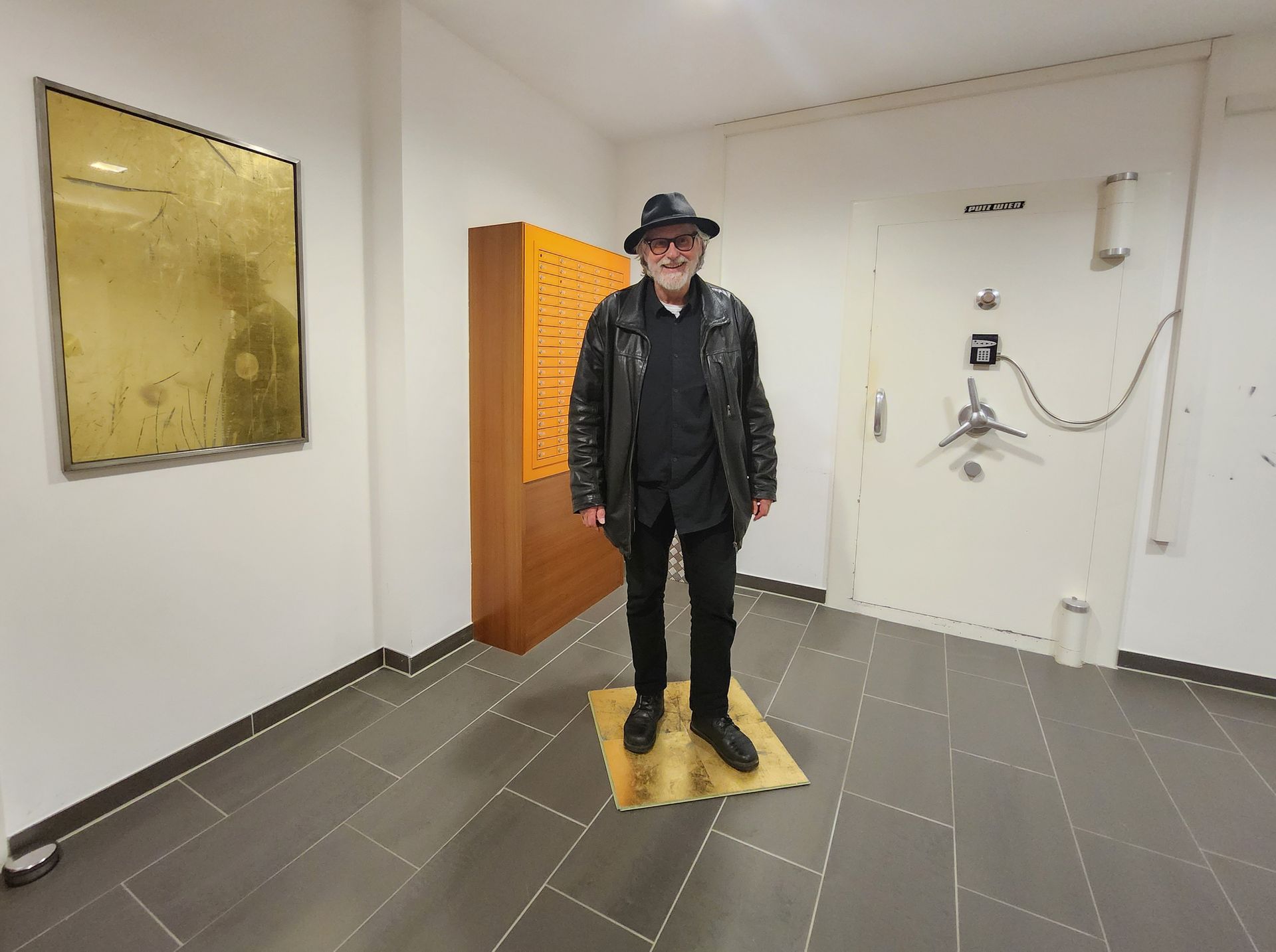 Ganz spontan machte das EU27 Austria Bodengold zum dreizehnten Mal Station. Diesmal im Tresorraum der Raiffeisenbank Sierning-Enns. Links im Bild ist ein Relikt von der Goldenen Empore des Design Center Linz (1997) zu sehen. Es ist dies die ATB Seite mit der Telefonnummer der Raiffeisenbank Bad Hall da das goldene ATB Relikt der Raiffeisenbank Sierning bereits in Privatbesitz war