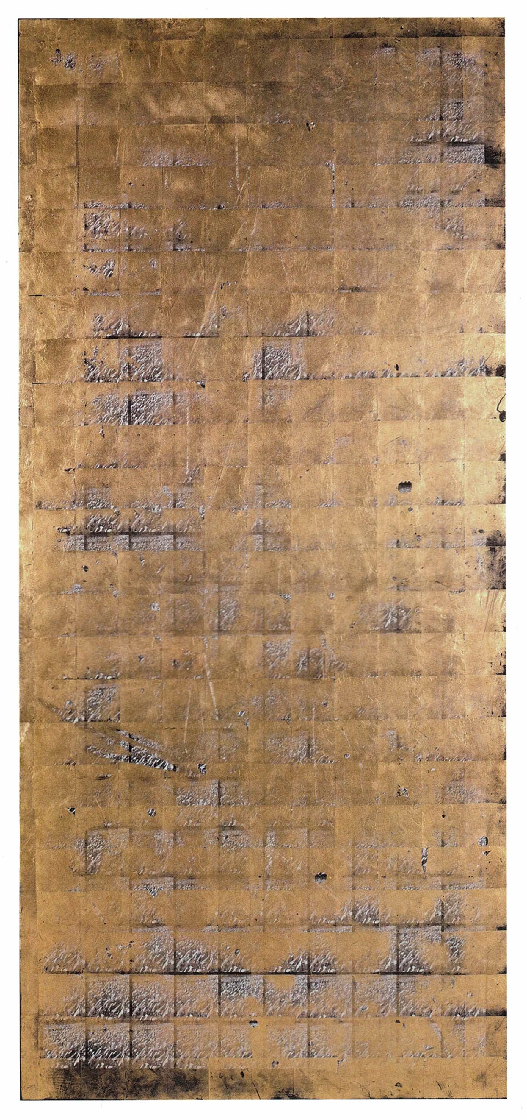 Eine 2,7x6m grosse Rauminstallation im Rathaus Steyr. Drei Triptychen entstanden aus dieser Bodengold Installation in der Goldenen Rathauspassage. (Katalog/Prozessdokumentation)